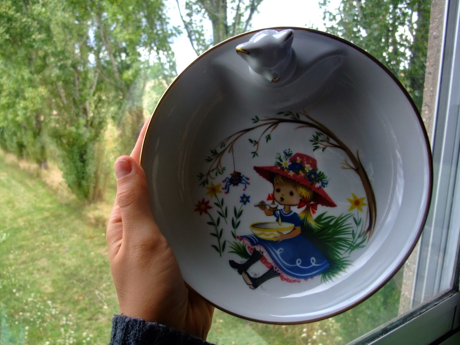 une assiette à bouillie, estampillée Limoges, liseret doré, dessin qui ressemble à ceux de Gottschlich mais il n'est pas signé. En parfait état !!