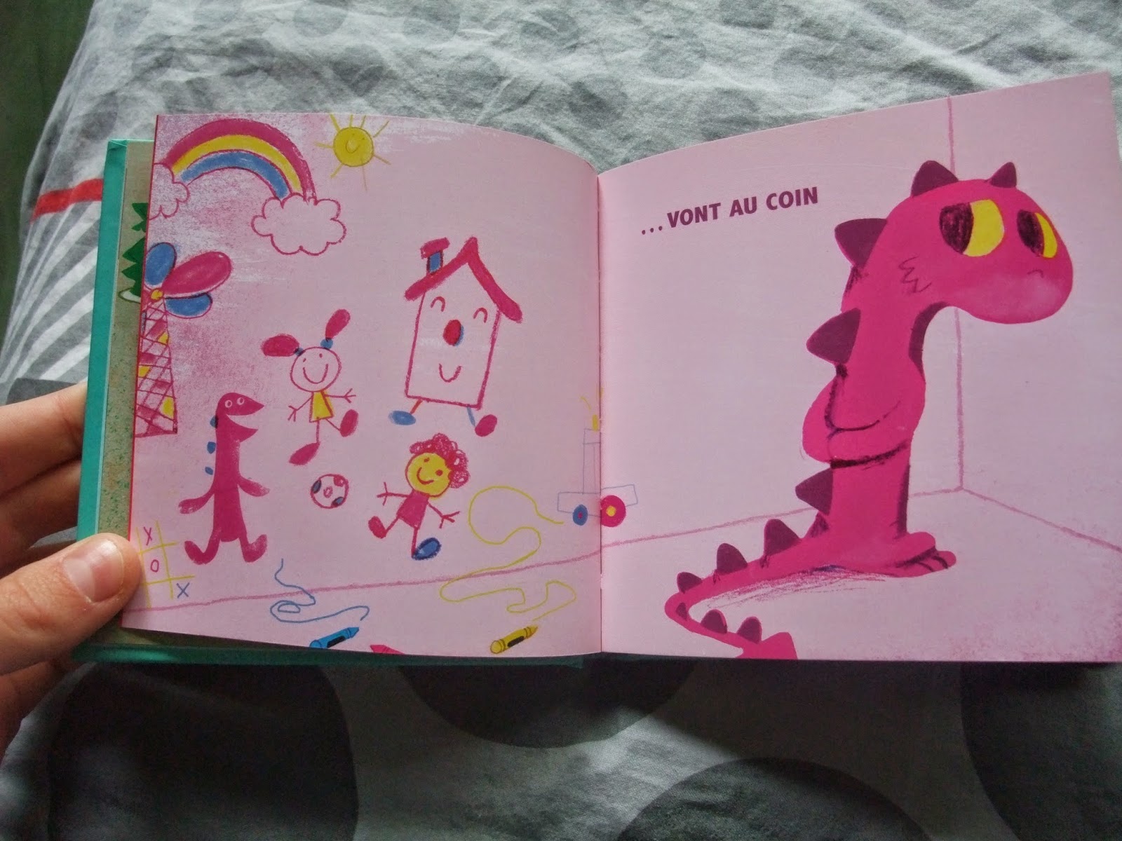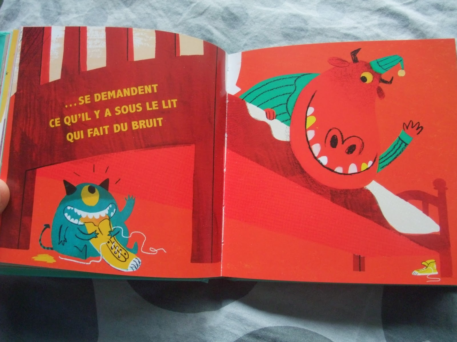 Les monstres aussi : livre reçu par la grand mère pour Halloween. C'est un coup de coeur, les couleurs sont hyper belles!!! de jolies harmonies. Permet de dédramatiser les monstres en même temps car ils font tout comme nous et on aussi peur des bêbêtes sous le lit ;)