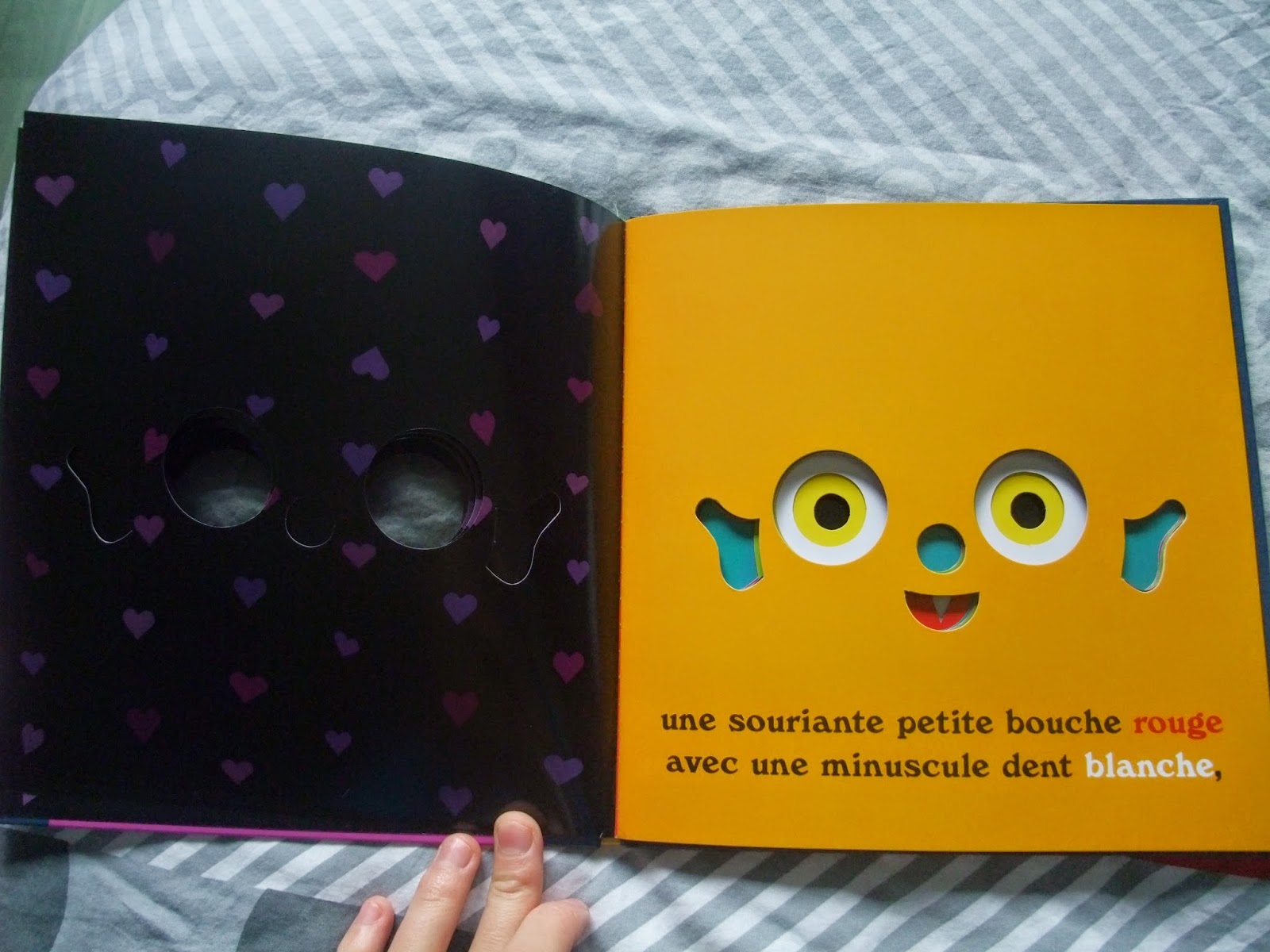Les monstres aussi : livre reçu par la grand mère pour Halloween. C'est un coup de coeur, les couleurs sont hyper belles!!! de jolies harmonies. Permet de dédramatiser les monstres en même temps car ils font tout comme nous et on aussi peur des bêbêtes sous le lit ;)