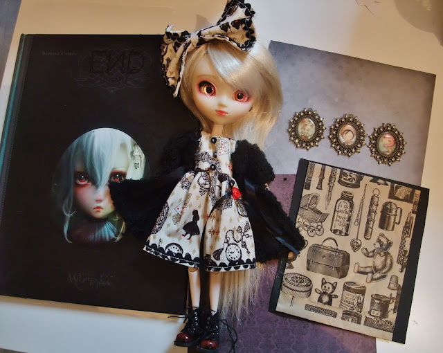 Depuis j'avais dans l'idée que ma pullip devienne le sosie de ce personnage, il me manquait la tenue adéquate : une belle robe de style gothique/victorienne, mais jusque là je ne trouvais pas ce qu'il me fallait ou bien hors de prix.