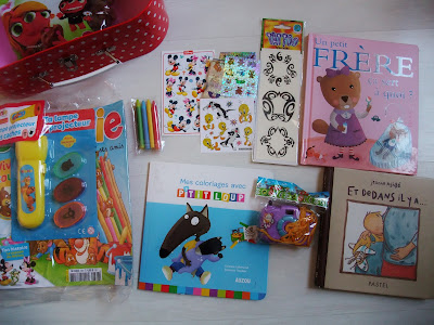 La valisette customisée par son autre tatie contenait des cadeaux de naissance,